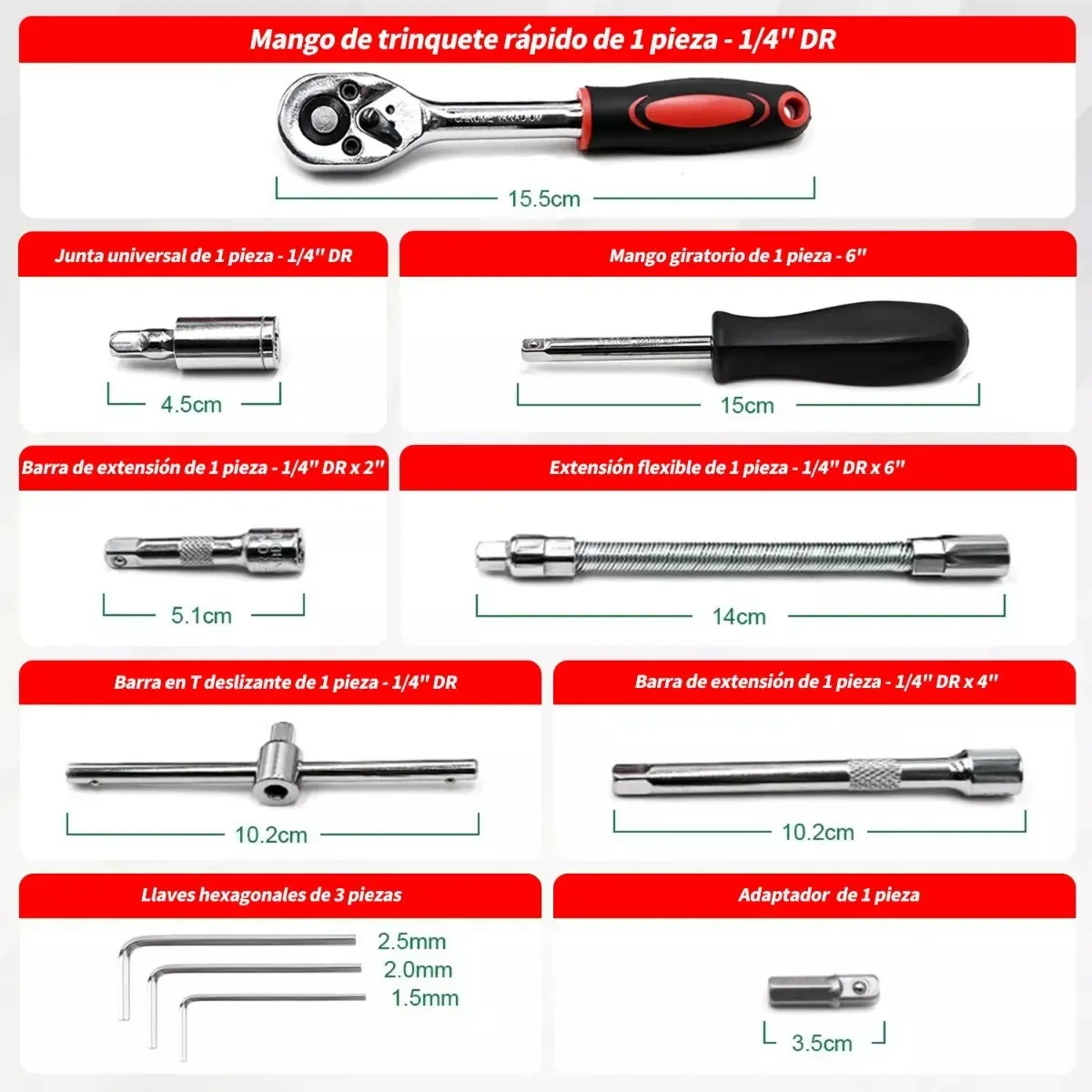 1. Un juego de 46 piezas de zócalo de 1/4 pulgadas, herramientas de reparación, juego de llaves de trinquete, herramientas combinadas.